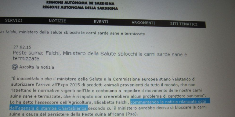 dalla Peste suina era stato lanciato in esclusiva dal notiziario Chartabianca